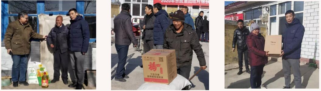 1月19日,農歷臘月二十五,在新春佳節到來之際,中國樂凱扶貧辦組織開展結對幫扶上溝村迎新春送溫暖活動,給上溝村村民送上生活用品和節日的祝福。樂凱黨委副書記王一寧、扶貧幫扶責任人等參加了慰問活動。